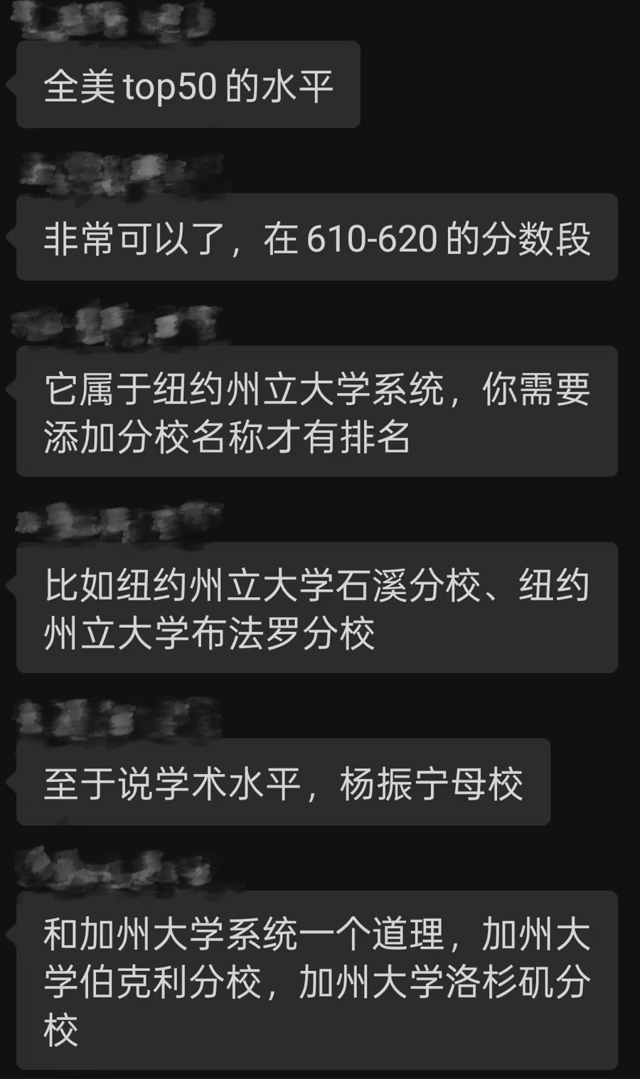 但在实际操作中,一旦涉及相对冷门的学校或专业,兼职老师往往只能“现学现卖”,或在群里向少数几名正式员工求助。而这些回复的重点,并不总在信息准确性上,而是以“安抚和说服家长”为目标。例如在介绍部分中外合办院校时,有时会用“杨振宁母校”等模糊表述来应对家长的疑问。